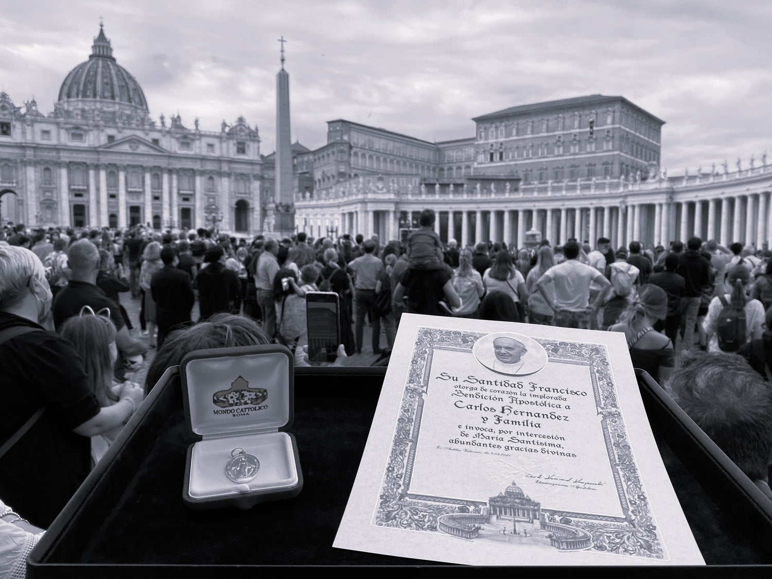 Ubicati di fronte a Piazza San Pietro da più di 60 anni, siamo lieti, su richiesta, di ottenere per gli oggetti da voi acquistati la Benedizione del Papa durante l'Angelus della Domenica rivolgendoli direttamente verso la Finestra del Santo Padre.